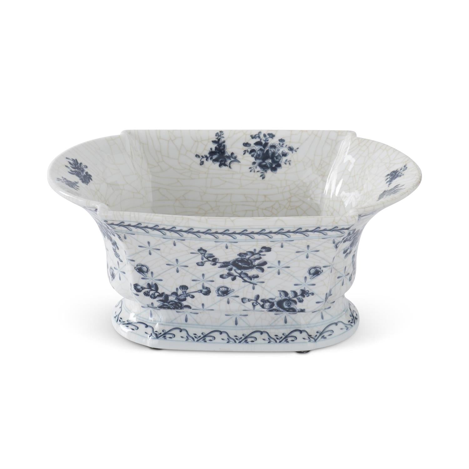 Blue & White Floral Ceramic Oval Fluted Bowl