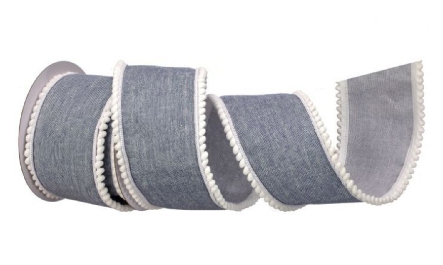 4" X5YD CHAMBRAY POMPOM RIBBON 1