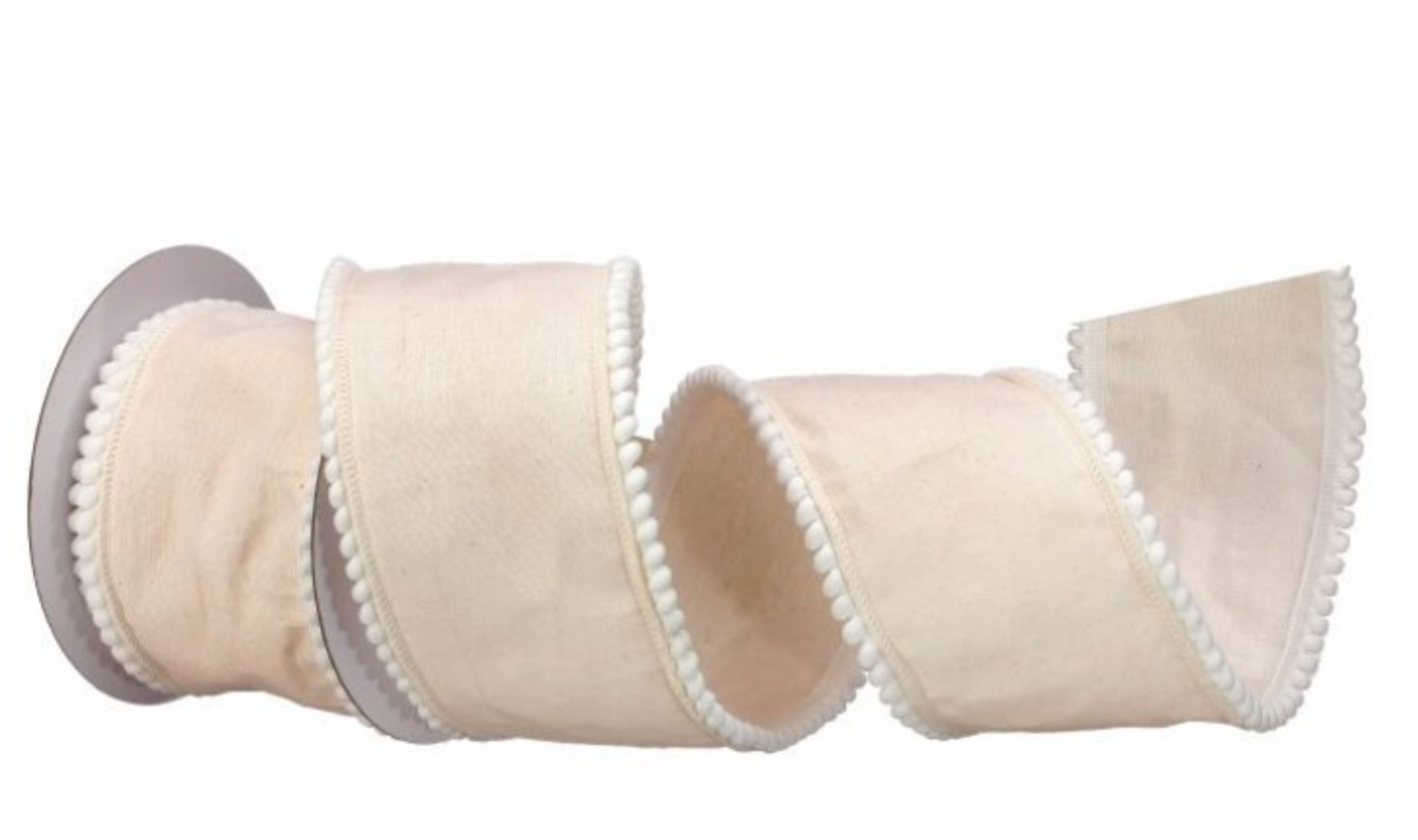 4" X5YD CHAMBRAY POMPOM RIBBON 2