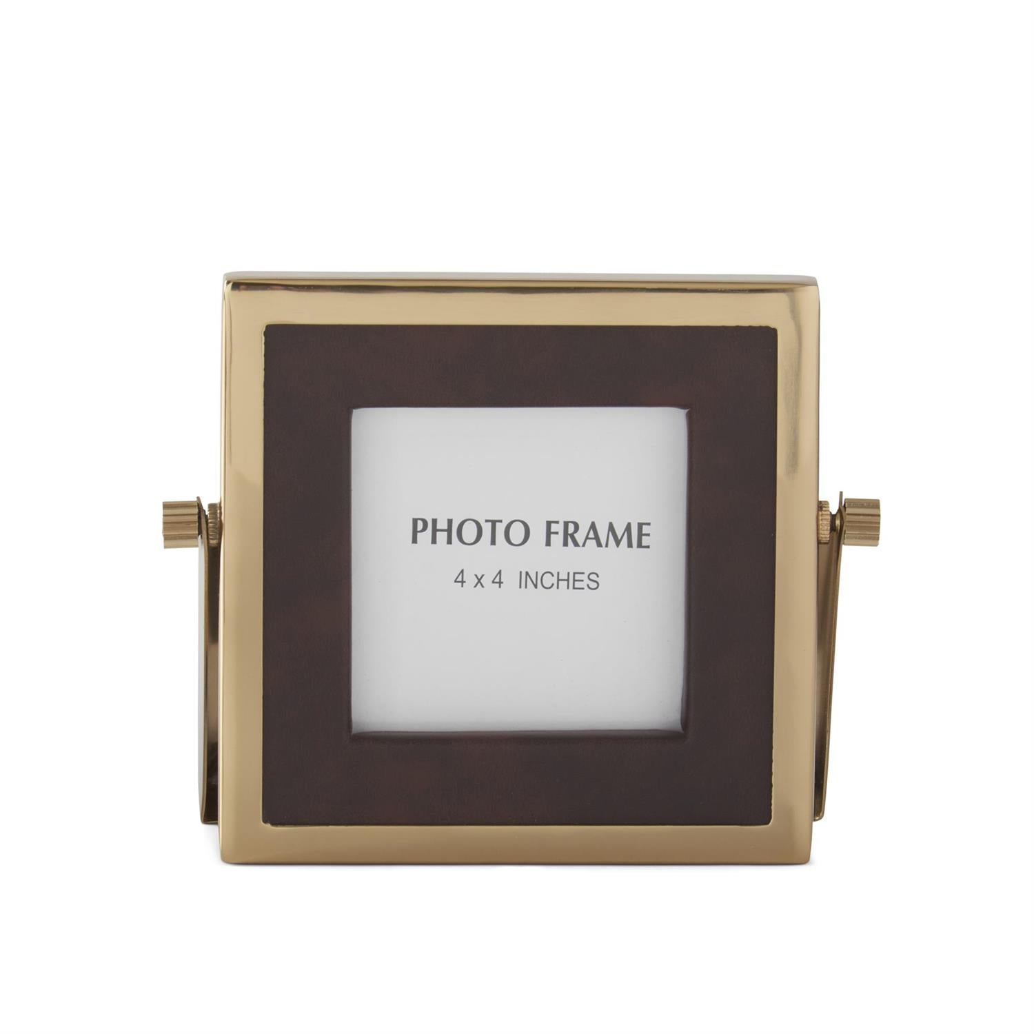 Brown Vegan Leather & Gold Metal Square Picture Frame
